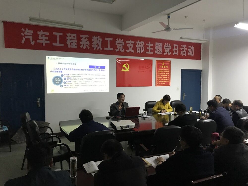 (文/马斌)汽车工程系教工党支部于11月6日下午在5508会议室召开11月份主题党日活动。公司党委书记魏文芳作了以“铸魂锻能 新时代高校教师新使命”为主题的党课,汽车工程系全体教师参加了活动。