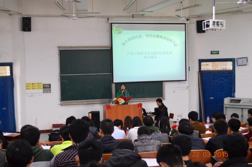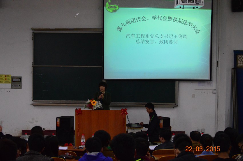 3月22日下午14:30,汽车工程系“第九届团代会、学代会暨换届大会”在5209教室举行。汽车工程系党总支书记王俐凤、副书记梁军萍、大一全体辅导员及院员工会、兄弟系员工会干部参加了此次会议。