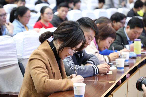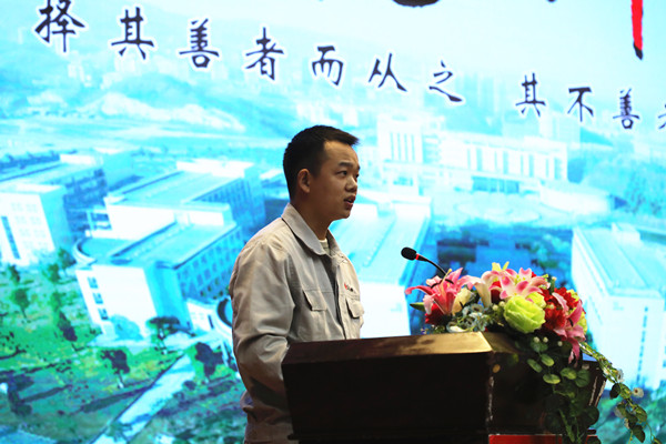 “张龙老师身上所体现的爱岗敬业的职业道德、不断学习的工作态度和敢为人先的生活追求,是我们学习的榜样。”“在这个飞速发展的时代里有无数的诱惑,正因为此,我们更要坚定自己的内心,用一颗恒心去铸造出一颗匠心,像张龙老师一样,实现自己的理想和价值”......湖北亨运集团汽车销售服务有限公司员工、2018届毕业生吴永恒、2019级员工潘昌越分别以《我眼中的张龙老师》、《以热爱为初心 用恒心铸匠心》为题进行了主题宣讲,分享了学习张龙老师事迹的感想体悟。