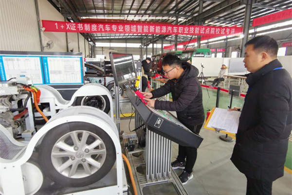 本次考评涉及汽车专业领域汽车运用与维修、智能新能源汽车两个职业技能考评工作,在教育部确认的1+X证书制度汽车专业领域的首批职业教育培训评价组织北京中车行高新技术有限公司指导下完成。考评现场每个工位都安装了监控摄像装置,要求对所有考生的考试过程进行录像,考生通过网络根据自己的账号和密码下载考试试题并在规定时间内完成操作和试题填写并提交、上传考核平台。