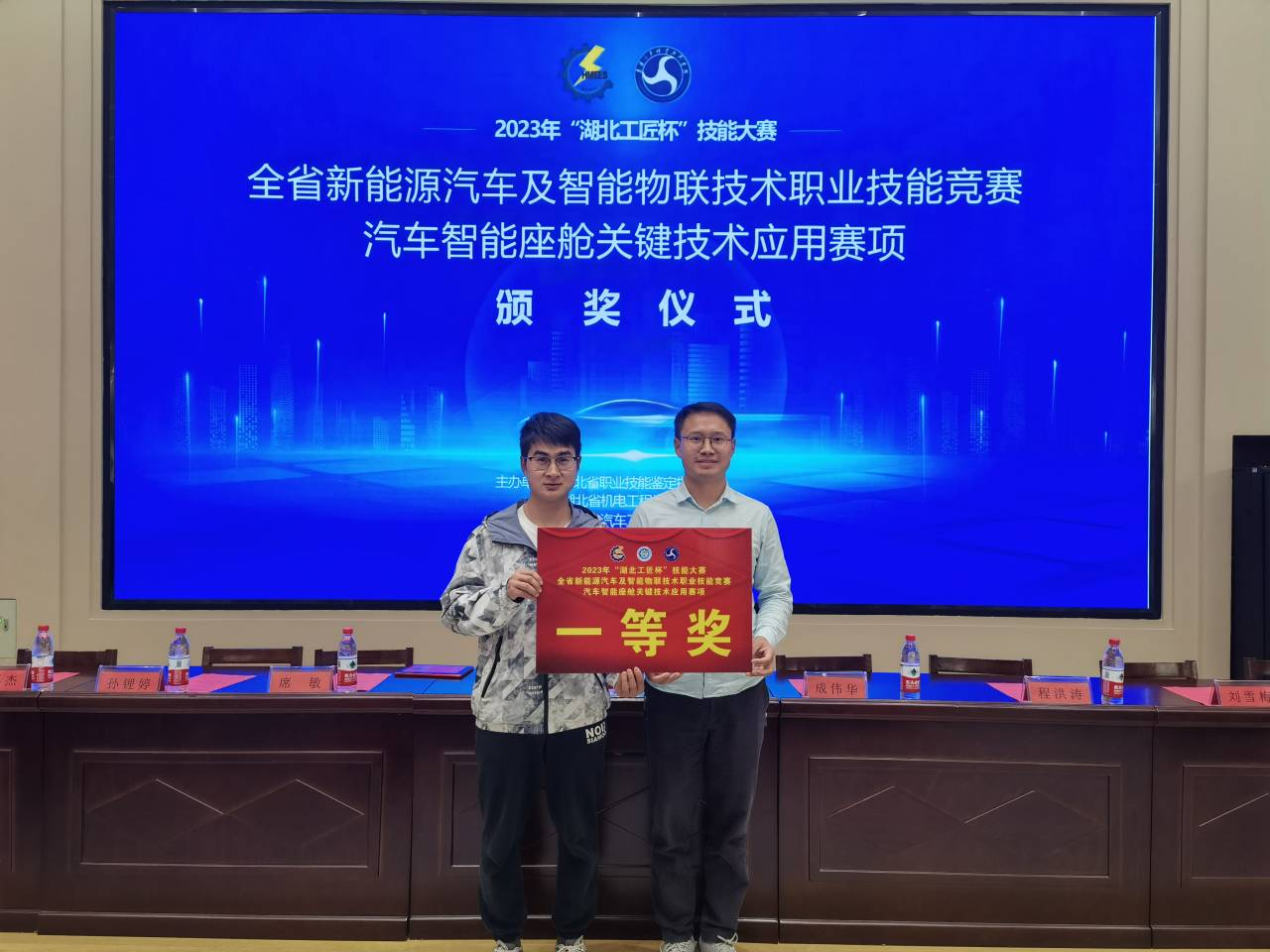 (通讯员:张超、唐晋)10月20日至22日,2023年“湖北工匠杯”技能大赛——全省新能源汽车及智能物联技术职业技能竞赛汽车智能座舱关键技术应用赛项在襄阳汽车职业技术公司举行。来自湖北省23所院校及1家企业的46支队伍,近百名参赛选手同台竞技,MK体育教师唐晋、范伶松参加竞赛,经过激烈拼搏最终斩获一等奖。