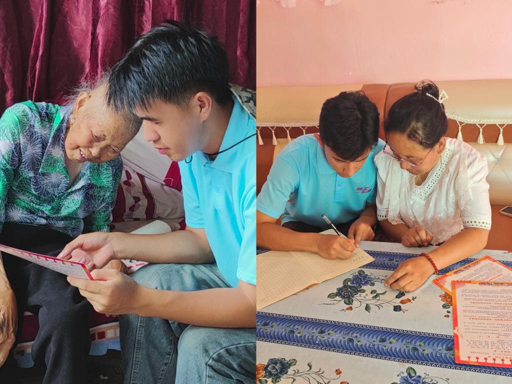 实践团成员买尔丹·艾买提与吴世富分别在其家乡——新疆喀什地区的巴楚县英吾斯塘乡及贵州省凯里市的大风洞镇云丰村,积极引导当地居民使用普通话进行交流。他们采用简单明了的方法,教导老人和儿童学习普通话的正确发音与汉字书写,不断地提升了村民们使用普通话沟通的能力,并为他们外出旅行做好了必要的语言准备。