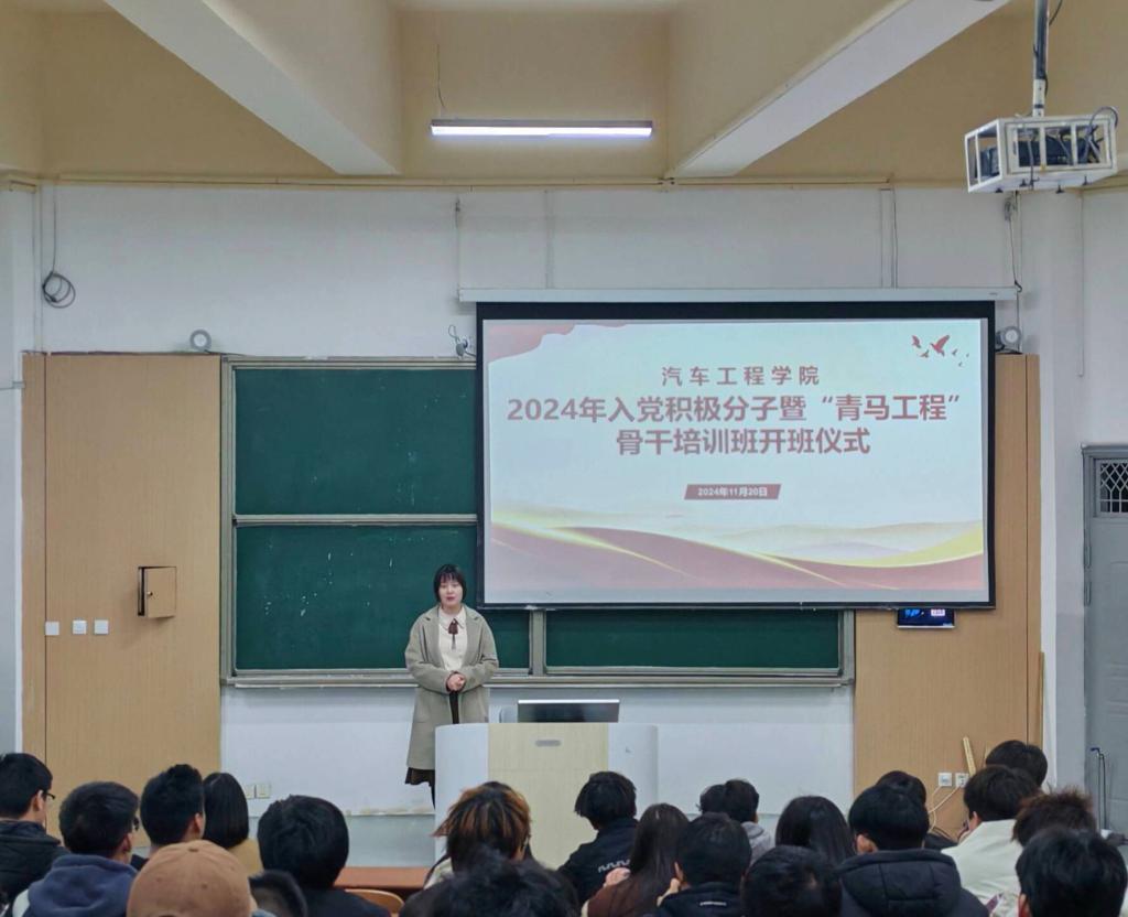 (通讯员:张领)为深入学习贯彻党的二十届三中全会精神和习近平总书记关于青年工作的重要思想,加强对入党积极分子、团员发展对象和团学干部的培养教育,MK体育入党积极分子暨“青马工程”培训班开班仪式于11月20日晚在5209教室举行。汽车工程公司党总支书记李霞、副书记李路、分团委书记曲杉和77名学员参加活动,2023级辅导员张领担任主持。